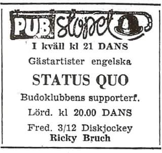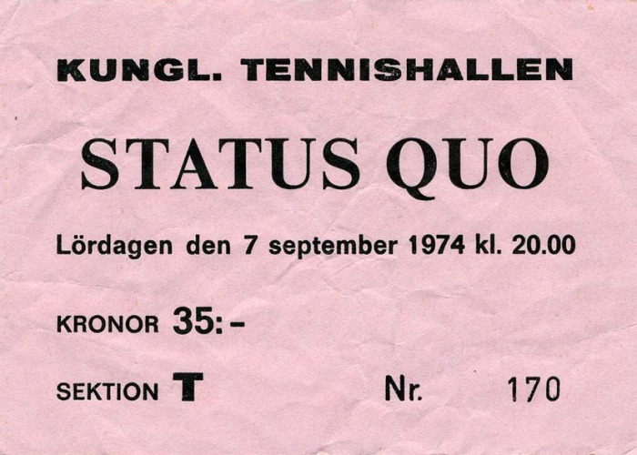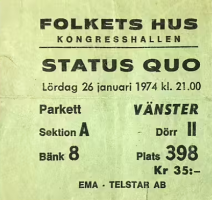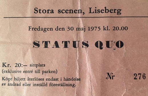 'Le merveilleux voyage de Status Quo à travers la Suède' !!! On pourrait, aisément, détourner le titre du livre de Selma Lagerlöf pour illustrer la carrière du groupe dans le pays. En effet, pas de moins de 141 concerts y seront donnés entre 1971 et 2024 devant plus de 700.000 personnes. La Suède sera un des pays les plus régulièrement visité par la formation londonienne. Côté vente de disques, le succès sera, également, incomparable puisque 24 singles et 32 albums figureront dans les Charts suédois, le tout couronné par sept disques d'or.